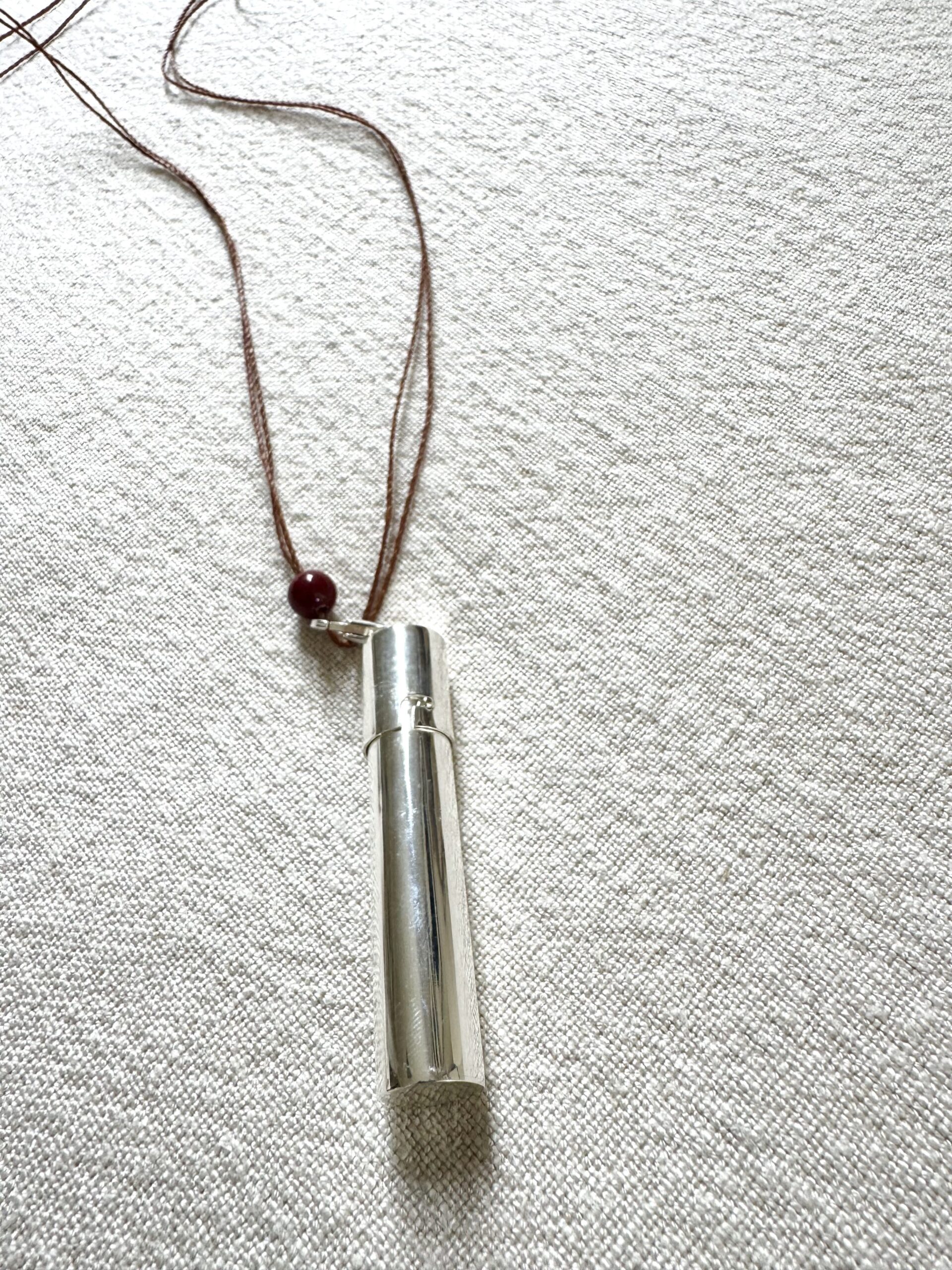 The Spritz comes in a signature Exhibit A box with a long waxed natural cord + wooden bead.  Or choose to customise with a chain of your choice.